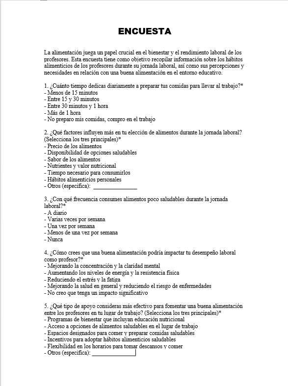 Si bien esta página puede ser útil para quien sea, está especialmente centrada a hablar de la salud dentro de las aulas, que no existen sin los maestros, siguiendo los datos recolectados en páginas y en nuestro propio colegio, es bastante normal que nuestro plantel educativo no posea los mejores hábitos alimenticios y de ejercicio, se desvela que problemas de sobrepeso o una mala nutrición son bastante comunes en profesores, así como una mayor probabilidad de desordenes mentales por el estrés que conlleva la hazaña de ser educador eh aquí varios el material que hemos realizado para mostrar nuestro punto.